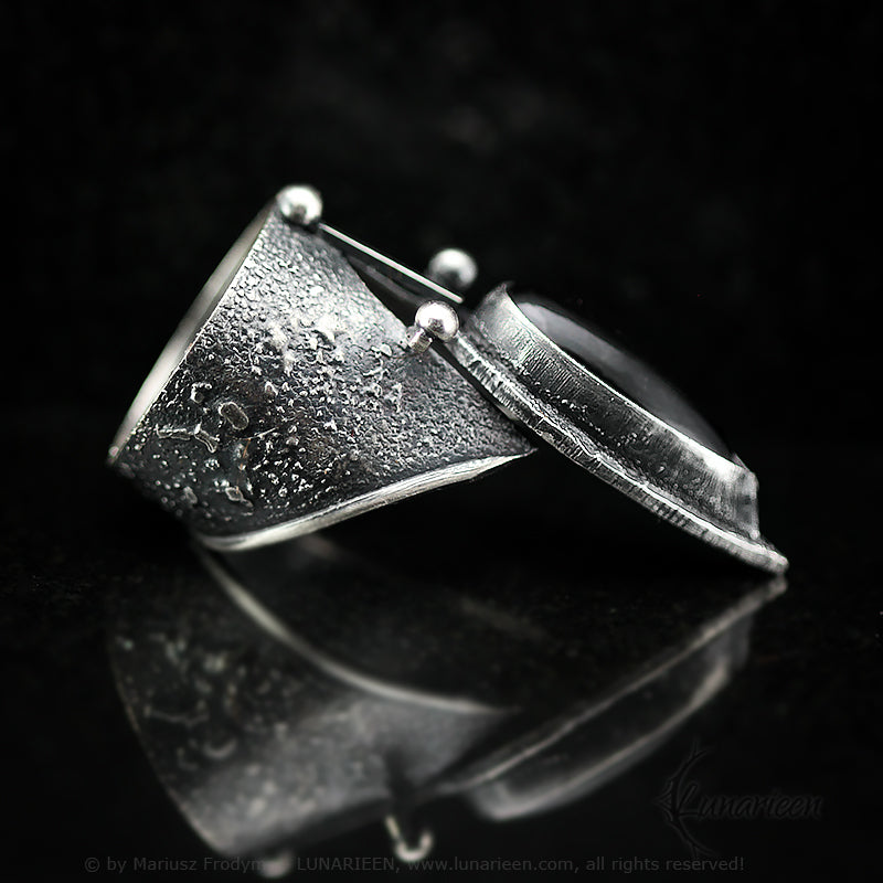 Handcrafted Rustic Brutalist Ring Textured Modern Natural Back Onyx Oxidized Sterling Silver Gothic Trendy Jewelry Unique Statement Ring